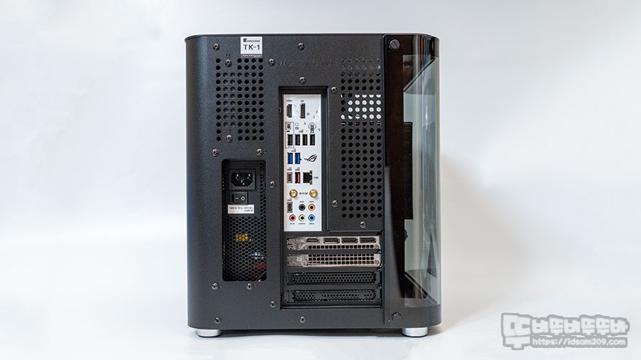 ITX 또는 M-ATX 폼펙트 메인보드를 수용할 수 있는 JONSBO TK-1은 딱 봐도 작지만 메인보드 위/아래/전면 쪽으로 케이블이 자유롭게 넘나들 수 있는 다양한 케이블 정리 홀과 하단부에는 커넥터가 뒤쪽으로 디자인된 ASUS BTF(Back to the Future), GIGABYTE Project Stealth 같은 메인보드도 사용할 수 있는 타공 홀을 제공으로 깔끔한 선 정리를 지원합니다.