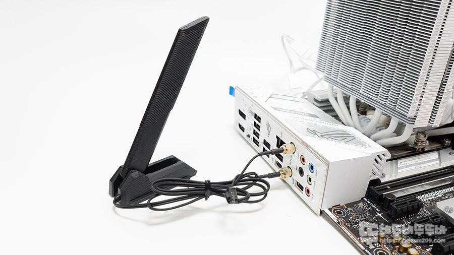 2.5G 이더넷 랜포트와 Wi-Fi 6E 최신 무선 인터넷 지원을 지원하는 모듈이 내장되어 무선 인터넷과 블루투스 버전 5.3 사용이 가능하여 빠른 무선 인터넷과 블루투스 기기를 간편하게 연결할 수 있기에 개인적으로 무선 모듈이 포함된 메인보드를 추천드리는 편인데요.