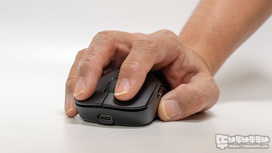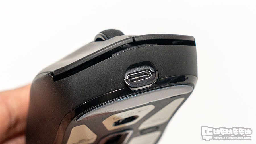 마우스 전면에는 충전과 유선 사용 시 편하게 사용할 수 있는 USB-C 단자를 모습을 확인할 수 있습니다.