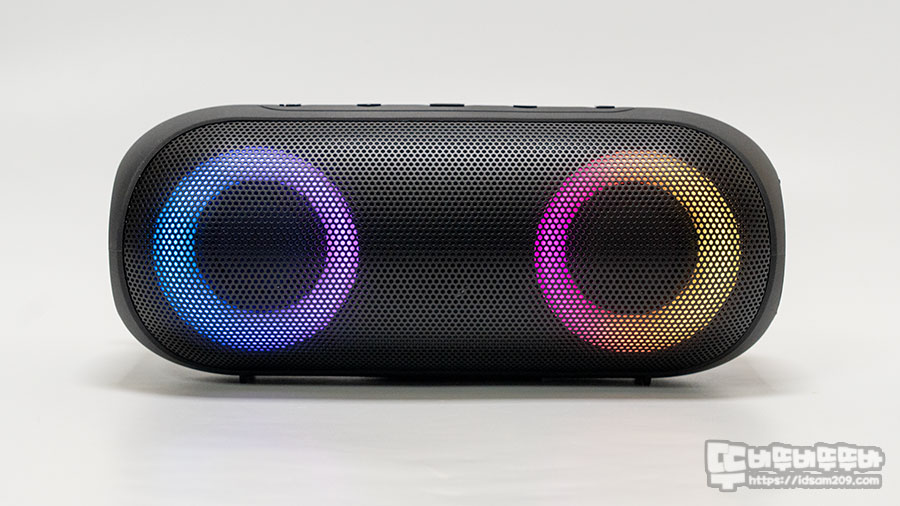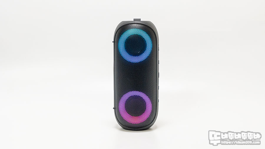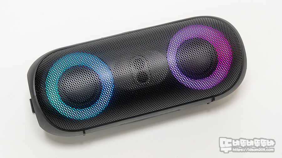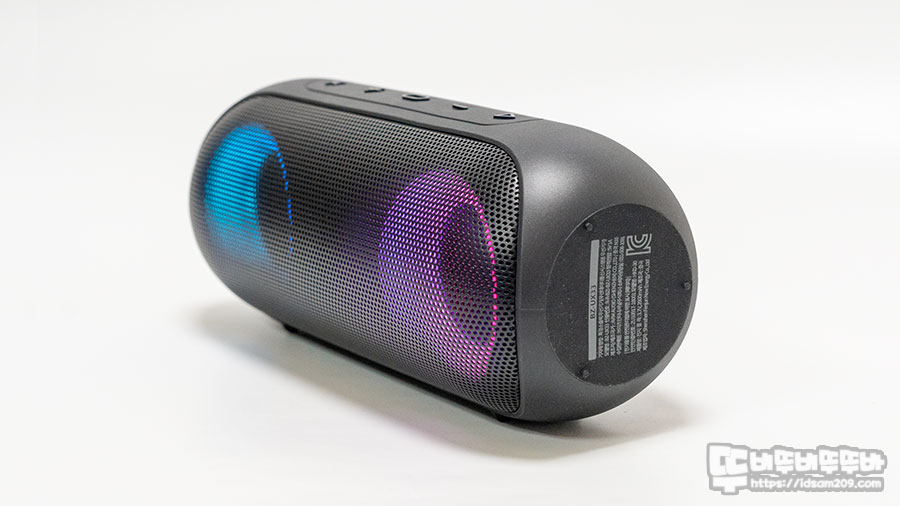 듀얼 드라이버 유닛과 패시브 라디에이터 구성의 10W 출력을 지원하는 포터블 제품으로 IPX7 방수지원하여 아웃도어에 특화된 조금 심심한 디자인이지만 RGB LED 효과가 추가되어 다이나믹한 사운드를 눈으로도 경험할 수 있어 매력적인 제품임을 확인할 수 있었습니다.