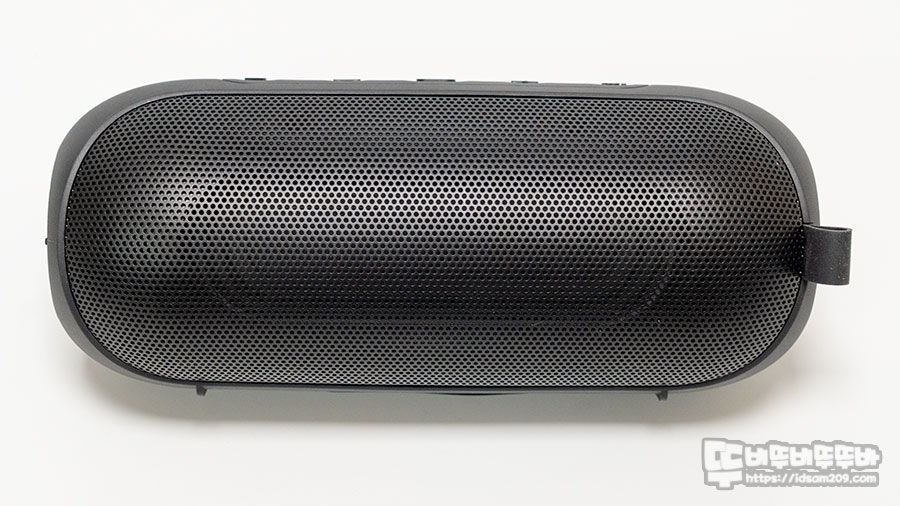제품의 좌우 측면에는 텀블러처럼 세워서 사용할 수 있는 받침 구조와 케이블을 이용한 스트랩 활용이 가능한 실리콘 고리를 제공하여 다양한 공간 연출이 가능하며 두 개 제품을 이용하여 TWS로 스테레오 구성으로 사용한다면 꽤 입체감 있게 활용할 수 있을 거 같네요.