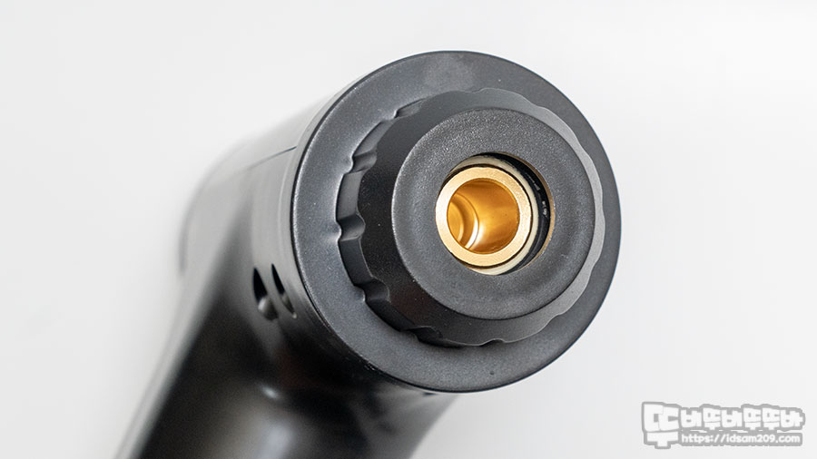 먼저 마시건을 살펴보면 215mm X 170mm X 65mm 크기로 손잡이 부분은 성인 남성이 잡기에 조금 크게 느껴지는데 마사기 건의 핵심이라 할 수 있는 배터리가 손잡이에 내장되어 그런지 살짝 두께감이 있는 편입니다.