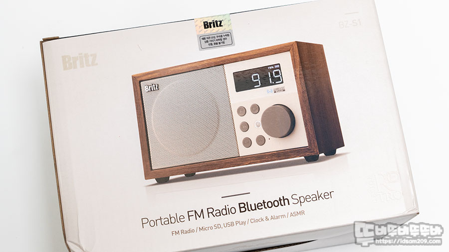 패키지에 제품의 이미지와 모델명 BZ-S1 포터블 라디오 그리고 블루투스 스피커 그리고 올인원 제품답게 FM라디오, MicroSD, USB MP3 플레이, 시계 & 알람, ASMR 사운드 등의 강조가 눈에 띕니다.