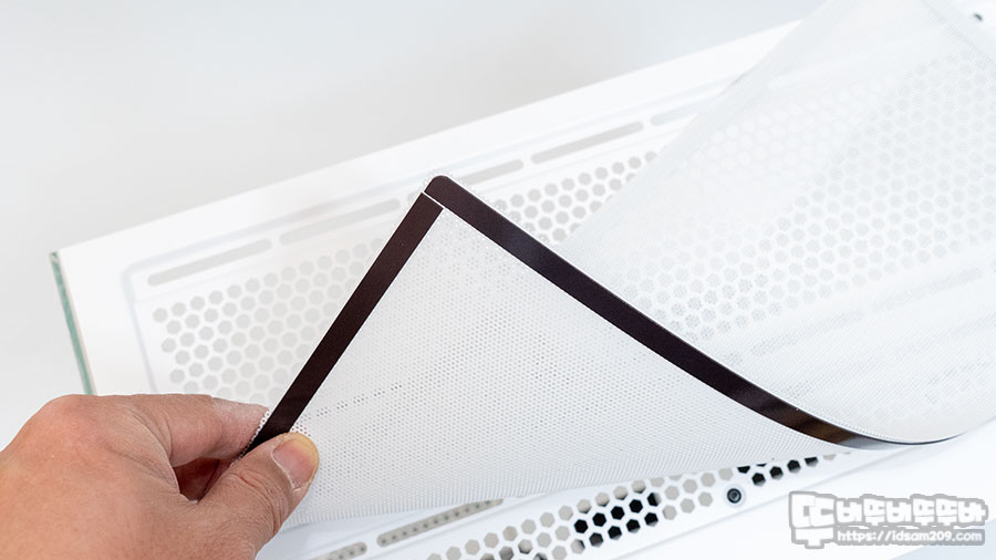 샤시 뒷면에 철재 사이드 패널 안쪽에는 탈부착이 가능한 먼지 필터가 내장되어 먼지 유입을 감소시켜 주면서 필터에 모인 먼지를 간편하게 청소할 수 있습니다.