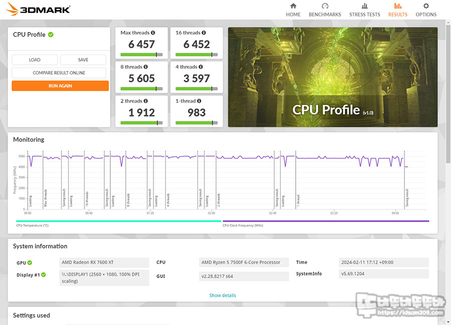 AMD 라파엘의 가성비 CPU인 7500F를 사용하다 보니 B650M 칩을 사용하는 ASRock B650M PG Riptide 메인보드의 최고 성능을 보여주진 못했지만 이 정도의 성능을 안정적으로 보여준다는 정보를 참고해 주시고요.