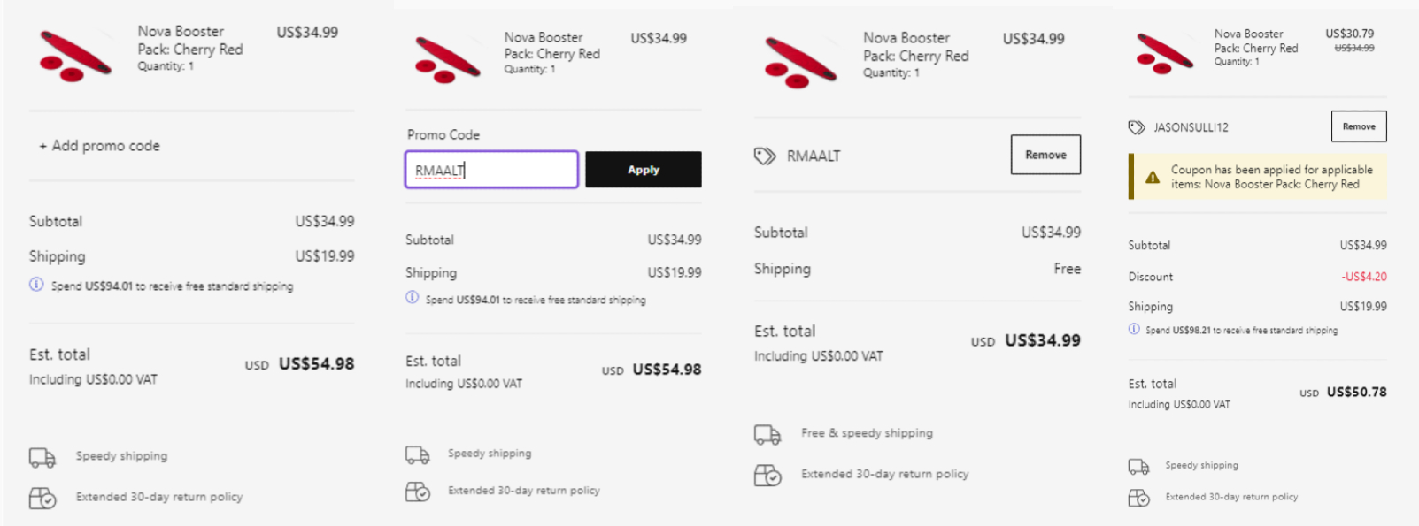 결재단계에서 Add promo code 항목을 클릭하여 쿠폰 사이트의 쿠폰 코드를 입력하면 결제 금액에 반영이 되는데