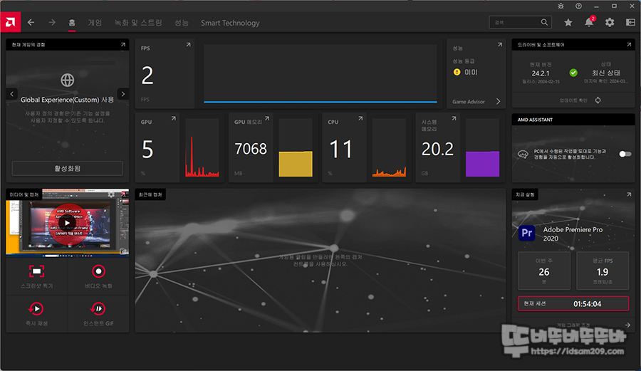 버전은 24.1.1부터 AFMF 및 동영상 스케일링이 사용 가능하다고 하지만 아드레날린 메뉴에는 관련 기능이 설명이 없어 인터넷 검색을 해보니 나름 편한 방법이 있어 테스트해 보았습니다.