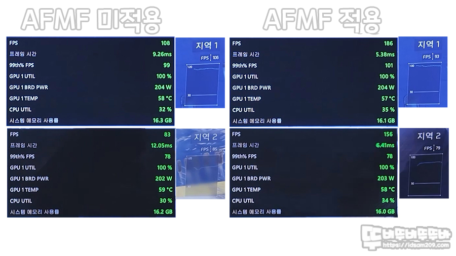 먼저 AFMF 미적용 시 프레임과 적용 시 프레임을 비교해 보았습니다.