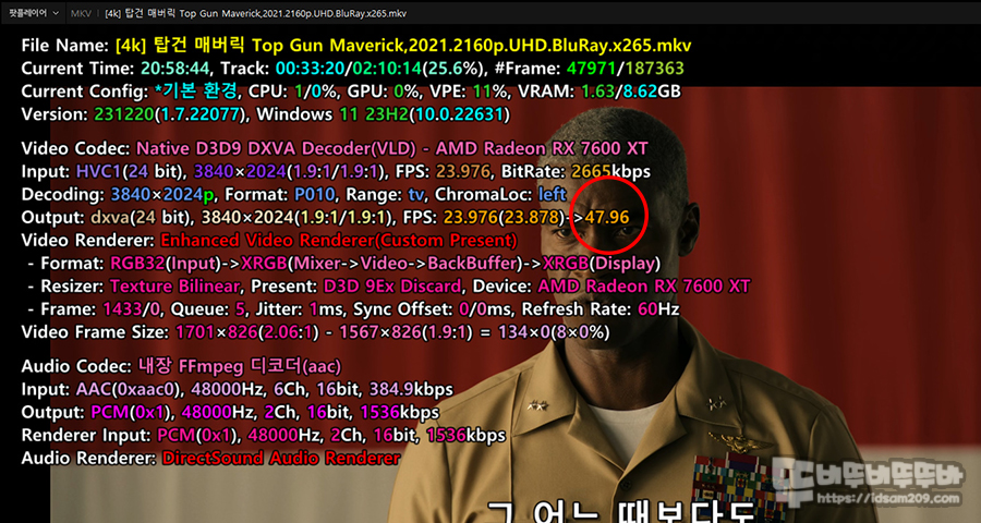 나름 영상을 재생하는데 도움을 받을 수 있는 부분이 AMD RADEON 6000/7000, 700M 그래픽카드를 사용하시는 분들이면 꼭 참고하시기 바랍니다.