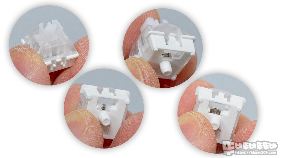 전체적으로 통통거리는 스위치 울림은 없으며 단단한 바탕에서 스위치가 움직이기에 안정감이 있는 타이핑 그리고 펙토리 윤활 적용으로 부드러운 타이핑감을 주었습니다.
