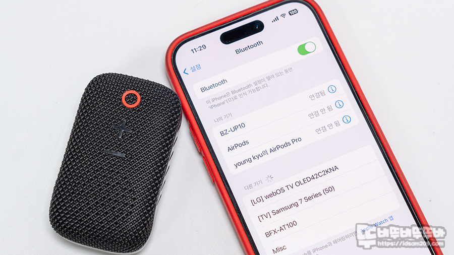 최초 전원을 켜면 자동으로 페어링 모드로 진입하며 이때 스마트폰 블루투스 기기 리스트에 등장하는 "BZ-UP10"를 선택하면 페어링이 완료되며 페어링 이후에는 블루투스 스피커 전원을 켜면 오토 페어링으로 연결되어 별도에 조작 없이 간편하게 사용할 수 있습니다.