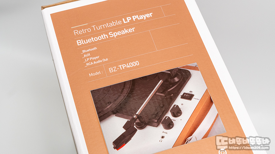 BZ-TP4000 휴대용 턴테이블 패키지는 제품의 특징을 잘 표현하는 이미지를 사용하여 "아~ 이런 제품이구나"하고 알 수 있습니다.