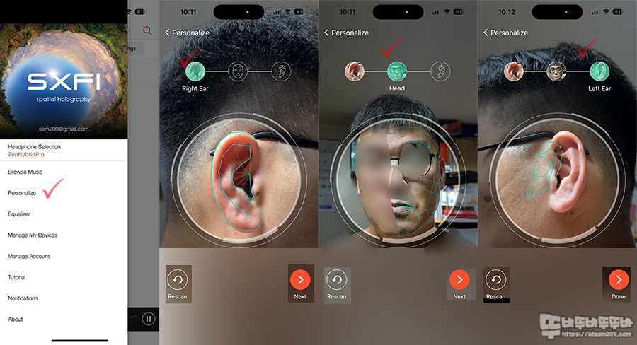앱을 사용하기 위해서는 메뉴 중 'Personalize' 메뉴를 통해 Super X-Fi 프로필 및 귀/얼굴 등의 개인 프로필을 생성해야 합니다.