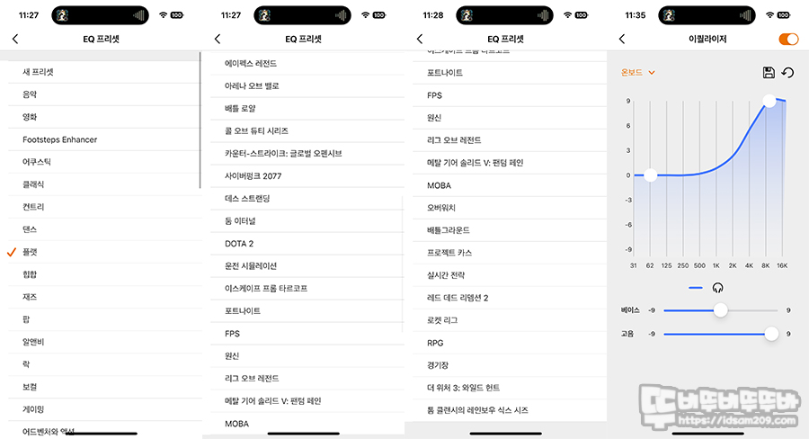 이퀄라이저 (EQ) 설정은 SXFI 앱과 동일한 구성지만 기본으로 저장된 EQ 설정이 많은 편이라 다양하게 활용할 수 있어 좋더라고요.