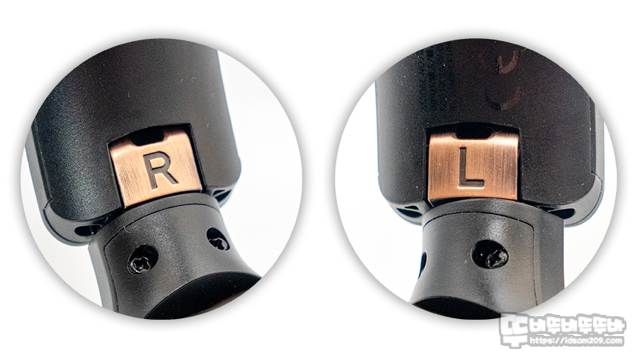 먼저 좌우 이어컵 하우징 위쪽에는 하우징 내부로 공기 유입과 방출이 원활하게 해주는 에어벤트 홀을 확인할 수 있고요.